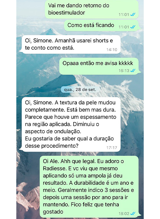 O Colágeno é uma proteína que o nosso corpo fabrica naturalmente, mas que a partir de 25 anos começa a diminuir a sua produção, deixando a face mais flácida. O Bioestimulador vem para repor o colágeno perdido e trazer firmeza para a pele. Marcas usadas: Sculptra e Radiesse.