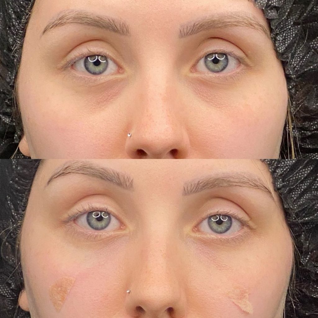 É utilizado Ácido Hialurônico para preencher olheiras profundas, deixando elas mais discretas e também ajudando na hidratação da pele, clareando a área aplicada.